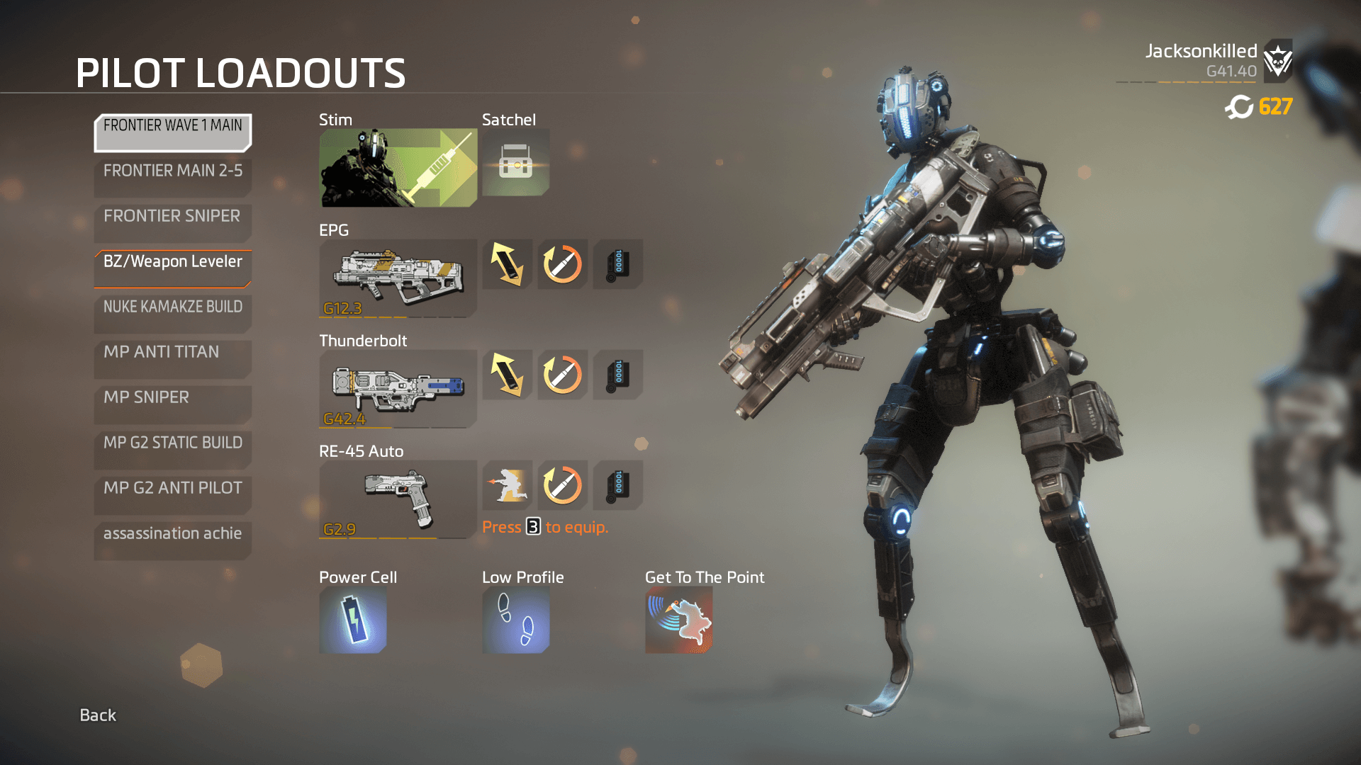 Loadouts allow for pilots to optimize gameplay. They are also a good way to prevent yourself from changing weapons or abilities constantly during intermission or during death respawn time. A good pilot will have specific loadouts for builds, maps and gamemodes. What will those be? That will be up to you to figure out but I will provide a template and examples below to help.